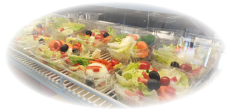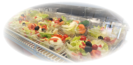 Freshly made w/ Iceberg & Romaine Lettuce topped with Carrots, Cherry Tomatoes, Sweet Red Peppers,
